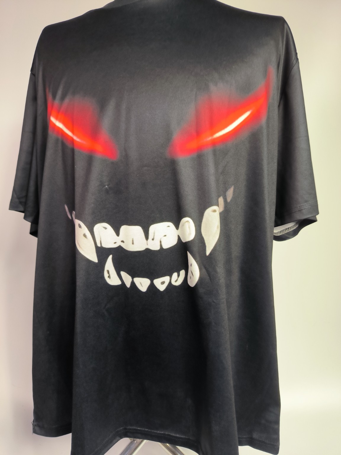 Футболка «Dark Eyes» — це більше, ніж просто одяг. Це стильний акцент, який додає впевненості та створює унікальний образ. Завдяки сучасній технології 3D-друку на тканині футболка отримала насичений та деталізований принт: яскраво-червоні очі та хижий оскал, що символізують силу, містичність та енергію. Такий дизайн робить її ідеальним вибором для тих, хто прагне вирізнятися серед натовпу.