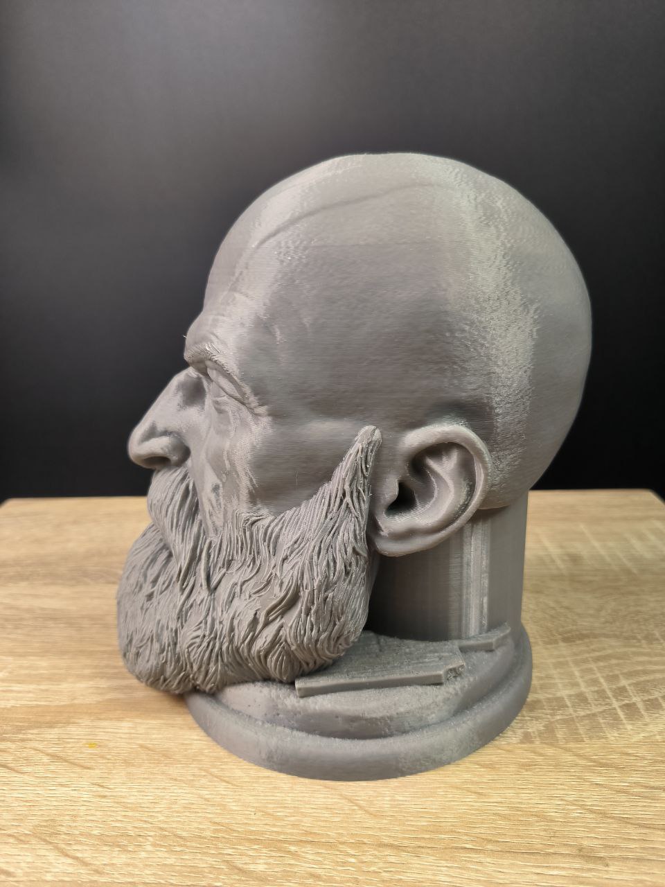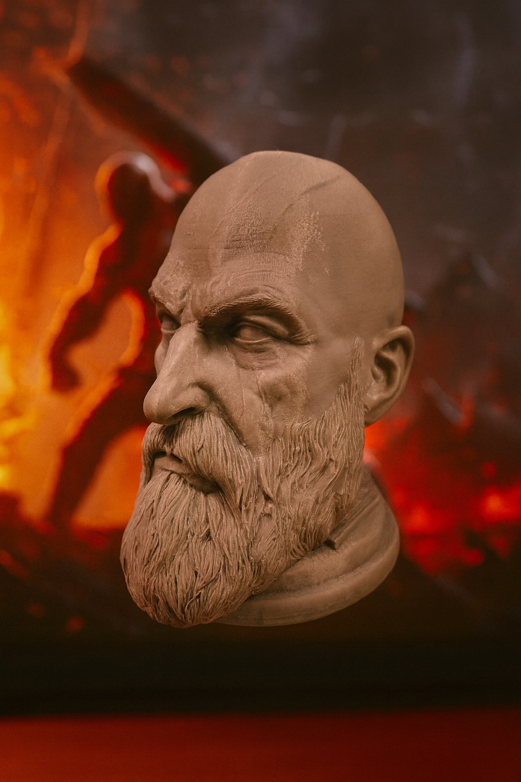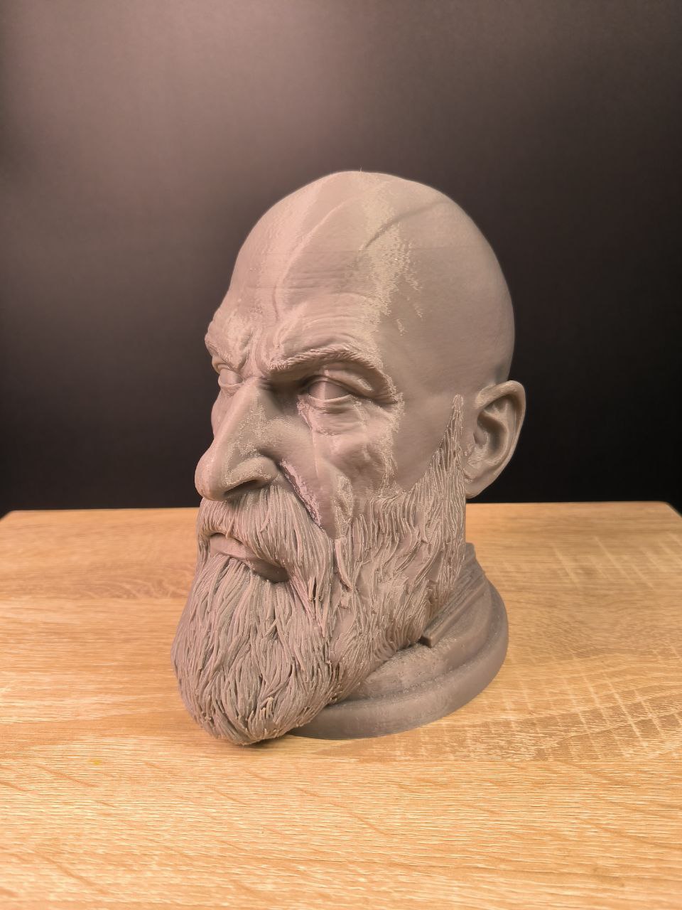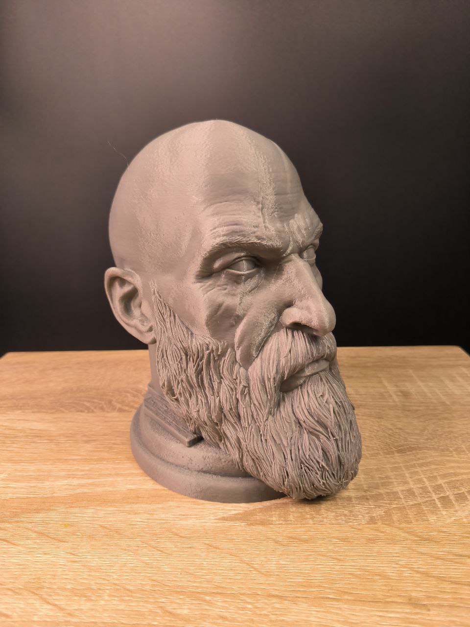 Металізований відтінок, суворий погляд, детальне моделювання бороди та м’язів — усе виглядає максимально переконливо. Це не просто декор, це символ сили й стилю на вашому столі чи полиці.